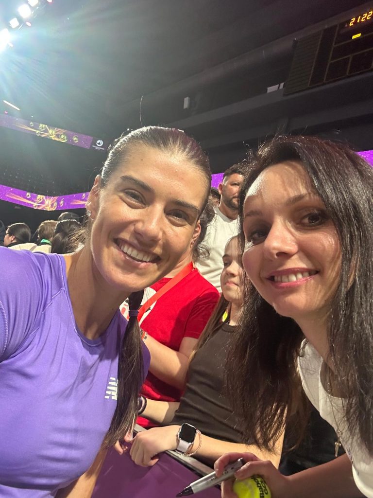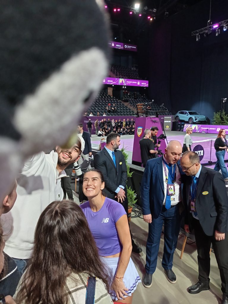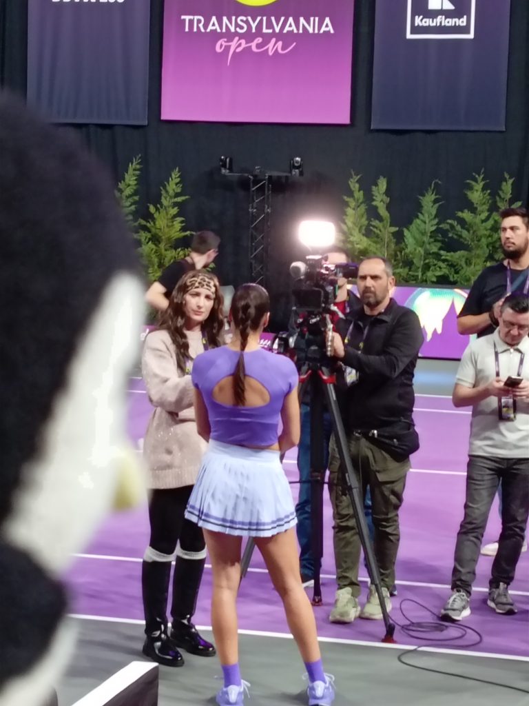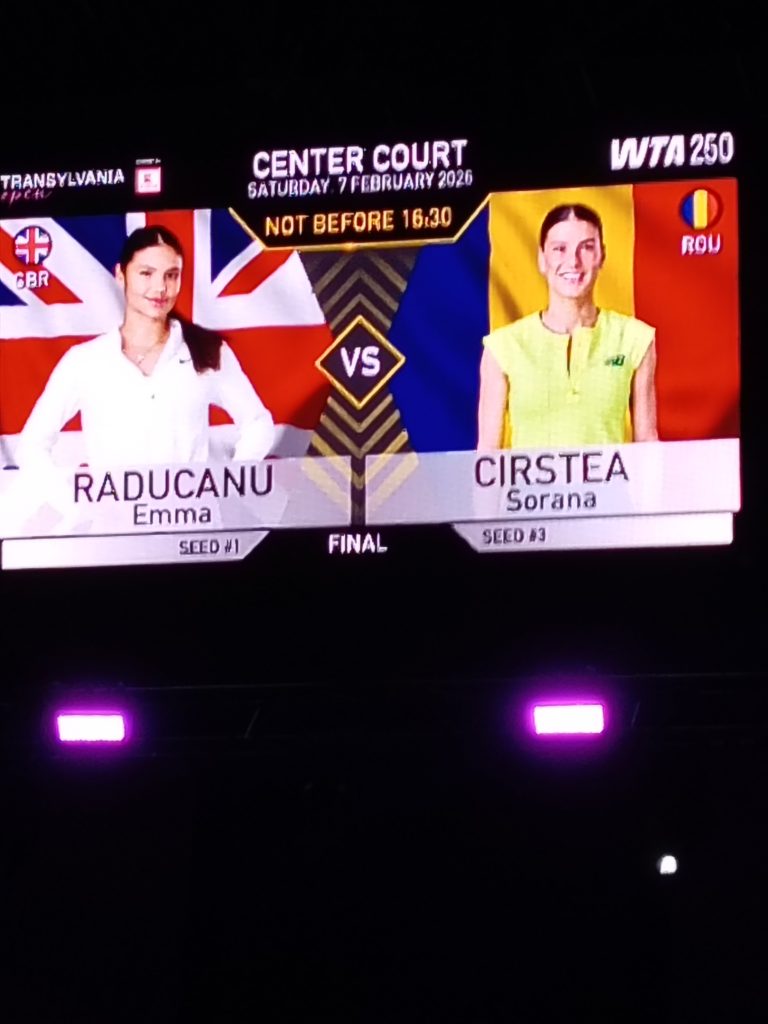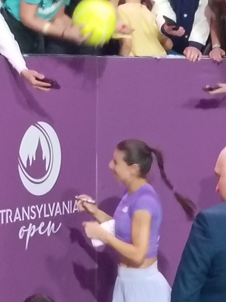 Sorana is last on the first day of the main draw, Monday 2nd February. Sorana has never won in Cluj and I have never watched her win live before yet Groundhog Day this is not as she scored a strong win against Kamilla Rakhimova 6-4 6-4. The win was relatively routine for Sori but not without it’s occasional complications. Sorana was getting frustrated in the later service games and complaining to her coach that she kept surrendering commanding leads, but the 14 Aces and strong home support by the vocal and dedicated Romanian crowd pushed her along when she needed it most. The quality of the tennis was very high but as the match went on the rallies got longer and Sorana was visibly tired at times. A quick break late in the second set backed up by an emphatic service hold to seal the match was enough to stop it getting sticky. A strong win for the home favourite and she was delightful with the excited crowd after. Not just signings and selfies she was taking time to talk to all the fans too, she hugged my friend Cristina and remembered meeting her in Brasov in 2020 where she inspired and encouraged her with her tennis, this obviously did have an impact as Cristina beat me 6-1 6-1 earlier in the at the Winners Sports Club using Briana Szabo’s old rackets, Cristina saw Briana during the match and had the opportunity to thank her for the loan of her weapons. She noted Briana was very nice. A special mention also to her father, Adrian who had been incredibly kind and welcoming to our party during our visit to Cluj. In return we shall make sure we support his daughter and Elena Ruxandra Bertea (Berty) in the doubles!