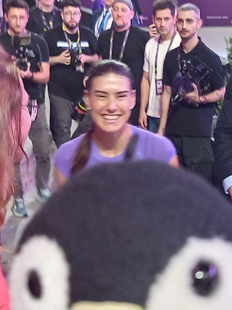 Yet it felt Sorana was never in any danger in the whole match, particularly on serve and her 100 per cent record of saving the few break points she faced highlighted this. She won in 56 minutes, under an hour for the second time this week. She was outstanding for the fourth time this week. As she gave her speech at the end of the match with her affectious smile I very nearly cried, it was the most emotional I have been at a live tennis match since Miriam Bulgaru made the final of Bucharest (which she won) I had travelled to Bucharest for just the final three days of the competition hoping that Miri would at least get to the quarter finals so I could watch her yet she was kind enough to win the whole tournament for me. I love these Romanian players and have done for several years however in the last year I have been very ill and supporting these incredible athletes has kept me going. I have travelled to intimate ITF events at Brasov and Bucharest where I have watched players like Stefi Bojica and Georgia Craciun play for their lives while fighting injuries, I have seen them grimace after every point and there was barely anyone watching them, these are free tennis events in Romania, Georgia’s was in the evening. Now here they all are in their hundreds. Kids running to the front while the matches are still being played to demand towels and autographs. Miriam gave me her towel and water bottle in Wiesbaden, I never asked for them but cannot describe the comfort they brought me when I had two of the scariest anxiety attacks of my life after being convinced in my mind I had cancer and believing I would die. This event, which is the reason I am such a big fan of Miriam and the reason Positivity Penguin exists I have become dillussioned with, it is more to do with marketing and commercial gain than the players and their experiences. An event where Wild Cards are questionable; Maria Sara Popa who I am very fond of was refused a Wild Card for this tournament and she had worked so immensely hard last year after a difficult start. Gabi Lee, my joint favourite player and the Romanian Number Eight, continually ignored by her own country. She won her first singles title in three years last May the Romanian Tennis Federation did not mention it. I was furious, I messaged their Instagram account to tell them Gabi had won and they gave her no coverage, they asked me for the links, I gave them everything, photos and all the tournament details and pages, still nothing, absolutely disgusting. I had met Gabi for the first time in Wiesbaden, she is one of the most nicest, modest and charming people you could ever hope to meet. I used to run an Instagram page for the Romanian players, I was always messaging players and their teams or anyone involved in Romanian tennis for interviews and help with projects, often there no were no replies or polite declines but for Gabi Lee’s 30th birthday last year the response was overwhelming, so many players, past and present wanted to help, they recorded messages and sent photos, she is so popular with her peers, yet ignored by her country. She played for Romania in the Billie Jean King Cup last November for the first time at the age of 30. She was so visibly happy and proud and it was a magnificent effort in both her singles matches, I thought a corner was turned then, she was getting the respect and recognition she has always deserved but sadly her call up was a necessity due to the unavailabilty of other players. She had such a good 2025, she is fighting hard for the ranking which will get her access into the grand slam qualifiers. A Wild Card to this tournament would have helped her so much, it is incredibly unfair after everything she has done, people probably think I am making such a fuss but she is my joint favourite player, she has done so much for me, her tennis always brings me happiness and inspiration especially last year when I was in a dark place and needed it the most, I love her as a player and like her as a person and she will always have my support every point. What was I talking about? Oh yes Sorana Cirstea 🙂 Sorana too such an incredible person. After each match she has been so amazing with the fans, the lovely exchange she had with Cristina the other day for example. I have been sat in the front row each week and after every match I am getting crushed (in my own seat which I have paid for) by fans begging for towels autographs and selfies. I have had to retreat a few times and watch the on court interviews from a few rows up so I can breathe but this time I stay, I’m quite emotional, I’m so happy for Sorana. As she is doing the signings she sees me taking a few photos with PP and she came directly to me and shook my hand, she thanked me for my support and her Life Time Achievement Award and Penguin I had brought for her. It’s the perfect final, Emma Raducanu versus Sorana Cirstea and on my birthday. Even though I am British and immensely proud of what our British Number One has done this week I am supporting Sorana in the final, I am sure Emma does not mind in fact if Emma was not playing her she would probably be supporting her too!