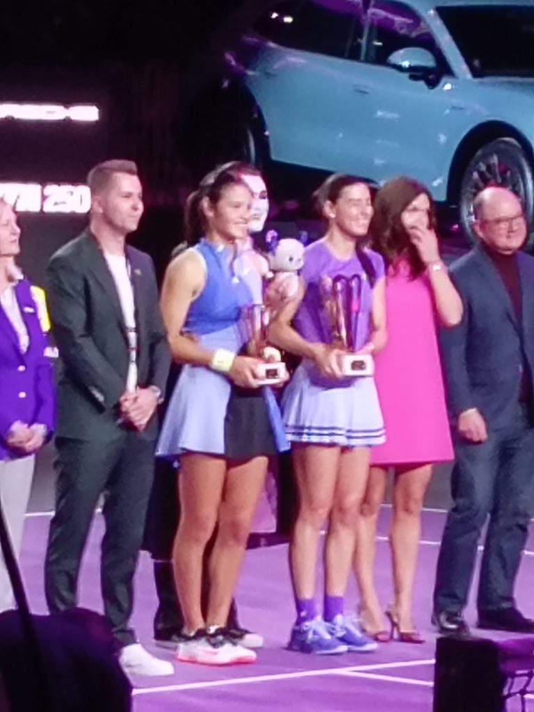 Emma who had looked so strong all week was hunting her first final since the famous US Open title in 2021, with a Romanian father she is adored in this country and received just as much support as the home players had had. She started incredibly well and was aggressive and disciplined in the rallies, she allowed her foot to slip off the accelerator in the second set and surrendered her serve late on for the opponent to draw level. She was making more errors and her tennis had become too passive, she complained to her coach she was trying to go to the net but getting passed continually. The approach was not the issue she needed to find a way to play more aggressive again. She did just this in the final set and started to wrestle back control of the points. Once she was back on the front foot she battled her way to the victory 7-5 3-6 6-3 in just under three hours. An excellent win against a strong opponent who had done very well this week.