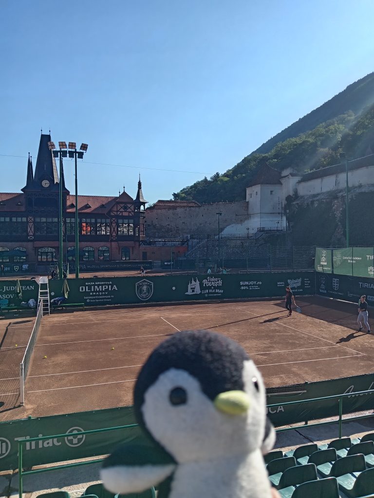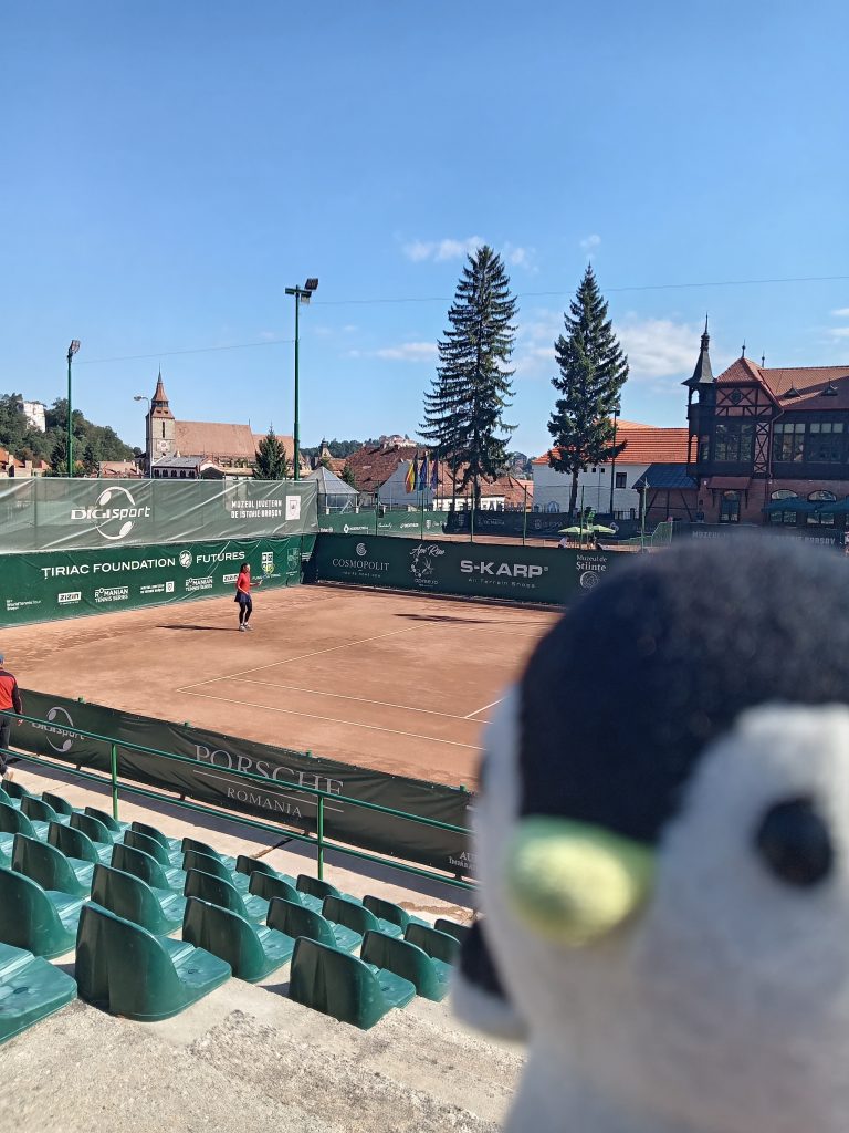 The travel from Bristol to Brasov was a day and a night, lengthened by the bloody Flixbus moving bus stops and making us miss it, forcing us to catch another coach to Heathrow and an Uber to Luton for a lot more money then we had hoped to spend. My party is Postivity Penguin and Adrian, an old school friend and seasoned tennis trip adventurer. We meet Oana Simion at Bucharest train station and the three of us travel to Brasov together on a pleasant train journey. Oana is alone this tournament as often lower ranked players find themselves on their arduous journeys and I am seconded as an unofficial coach for the week. A role I am to relish in so I can be offered the Billie Jean King Cup Captain of Team Romania to save them from plummeting in Poland. Furthermore, I am in regular contact with the Oana or the Wolf as I have nicknamed her, she has done a lot for my mental health struggles, illness, health scares and anxiety and has also helped with my diet and my tennis. I love the idea of returning the favour in kind. We always talk about her matches, before and after so to do this at a tournament and encourage her live at the tennis club is very exciting and I think Team Wolf can get this one on the shelf.