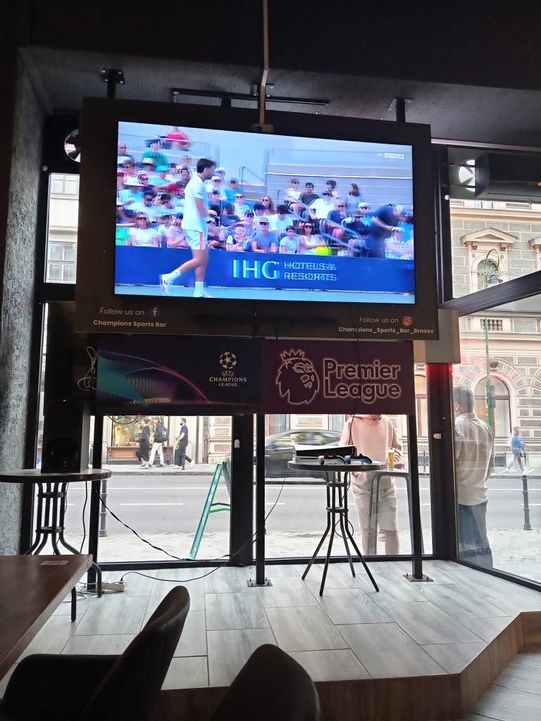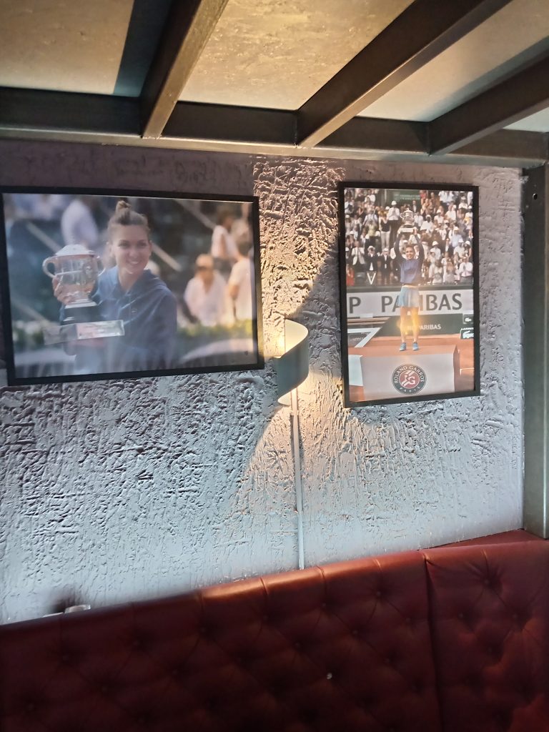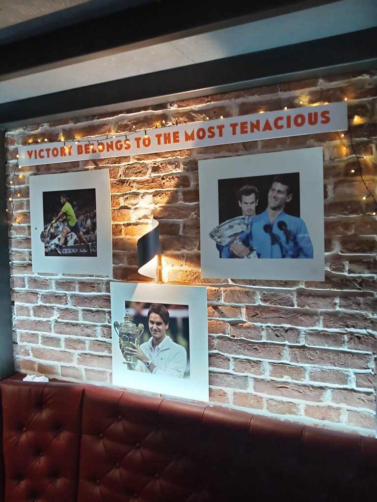 The Sports Bar has framed pictures of Roger Federer and the Lion Cub (Simona Halep) on the walls, my kind of place.
