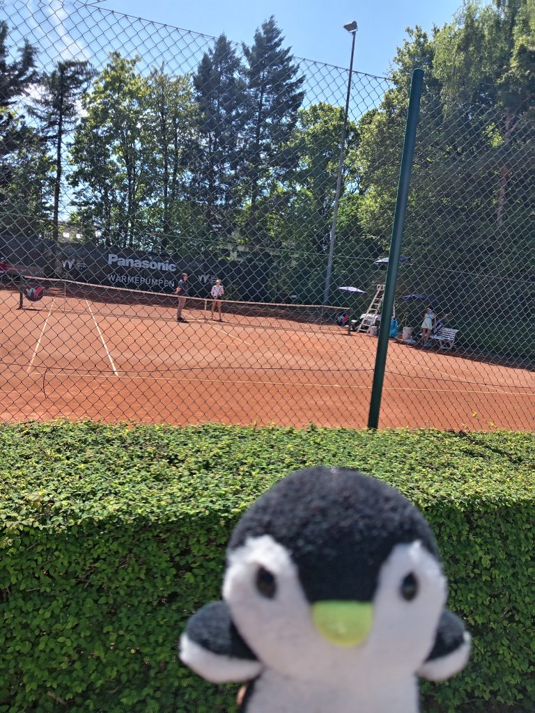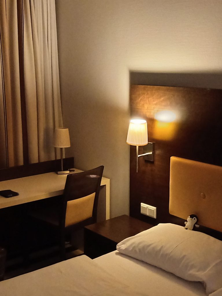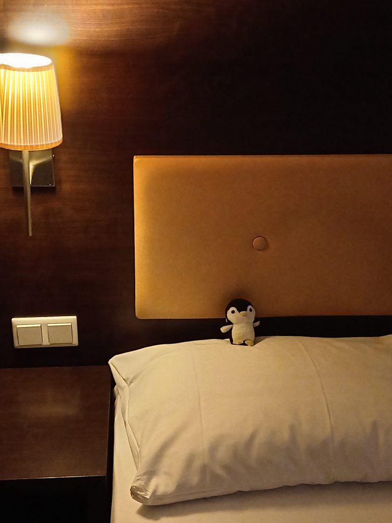 Whilst not wanting to dwell on the negatives or wallow in self pity it is important to put it into context, my health is somewhat declining. Physically I am struggling daily with very heavy fatigued muscles, especially in the legs and intermittent pain across my lower body. The fatigue is also mental to some extent and casting clouds over my judgement. Coming to Wiesbaden was a last minute decision and somewhat a risky gamble knowing I am not well. Yet I reasoned a few days in the sunshine watching a couple of my favourite tennis players may help to ease my pains. The trip from Bristol in the South West of England was exhausting, both coaches were delayed long enough to make me anxious about potentially missing my flight yet both drivers made up time on the road to significantly trim the deficit and actually arrive close to the original arrival time. The pain comes and goes, one of the hardest things to contend with is standing for long periods of time without supporting my body so the delayed coaches and lack of places to sit taxed my weak frame. The flight was uneventful and I arrived in Frankfurt late last night. To extend my hotel in Wiesbaden just by one night meant doubling the total cost so I elected to spend the night in the ‘Bristol Hotel’ Frankfurt City. Like picking a horse in the Grand National, ‘Bristol’ being my home city gives me oppotimism yet 30 pound a night gives me reason for concern. Germany, is a beautiful country and driving through the tranquil city in the middle of the night was calming, the clean streets, lots of lit up buildings and trams everywhere. Bristol Hotel does look pleasant and modern, the receptionist seemed about as tired as me however. The room was pleasing enough, I unpacked Positivity Penguin who settled in nicely. It is one night so I cannot unpack too much. I have a copy of my book ‘Advantage Dalca’ that is a gift for Gabi Lee, one of the Romanian tennis players my novel is lovingly dedicated to. She was knocked out in the qualifying but I believe she is still here as she waits with Miriam Bulgaru, also Romanian, as alternates in the doubles tournament, they are my two favourite players so seeing them play doubles together and live would be like all my Christmases come at once, we just need one case of food poisoning. So I am going to walk around with a book and a penguin on day one. Physically and mentally exhausted I settle down to bed, thinking my room is okay, yet the mattress is quite hard, I am soon asleep regardless.