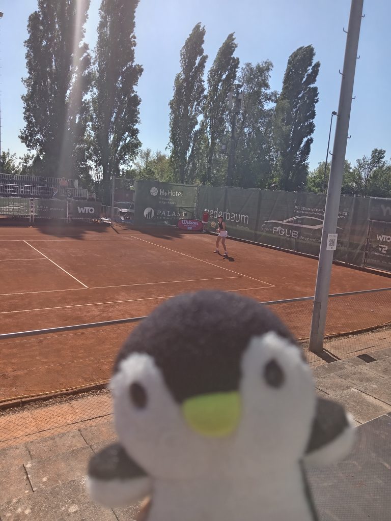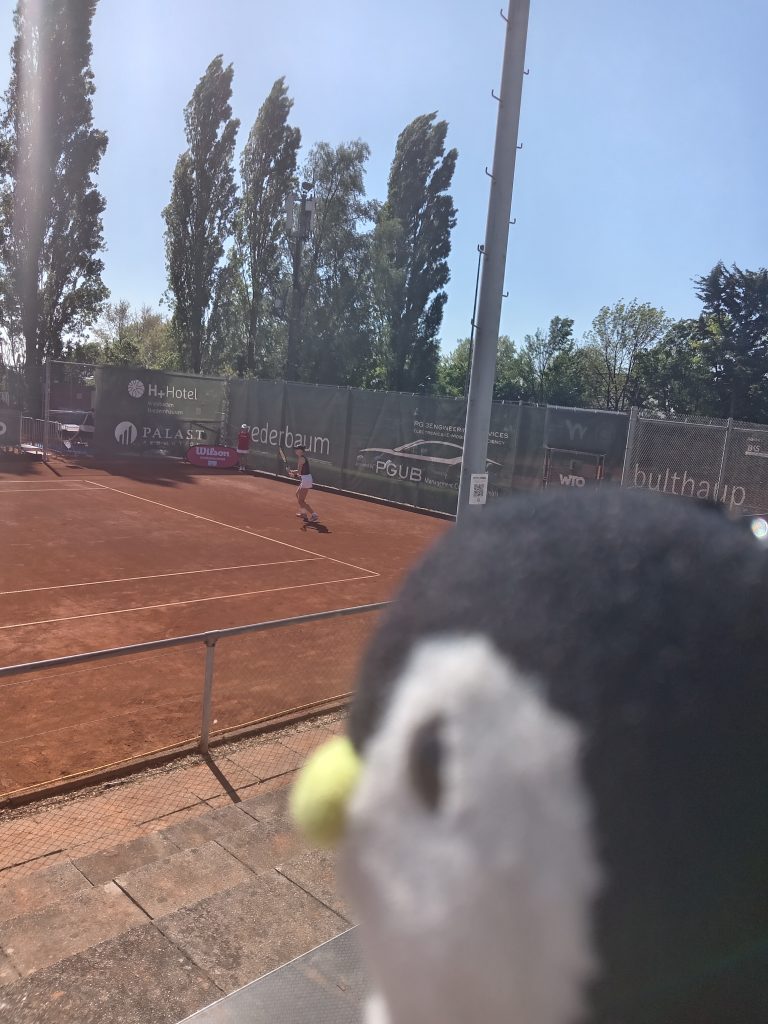 I slept soundly enough but did wake a little earlier than I had hoped for, this has been happening lots recently. The shower was good, strong pressure and very hot as Hotel Bristol bounces back from the hard mattress. As I negiatoted the floors with two Germans in the lift I was reminded I can speak a little Deutsch and should try and make more of an effort this week. Difficulties with the sun tan lotion, as there was plenty of liquid inside but the squirty bit was not having it so I took the top off. It is expected to get very hot this week. I am wearing my Miriam Bulgaru T Shirt, my favourite player, she is playing later on court three. First up however is Simona Waltert from Switzerland, I have watched Simi a few times and not only is she a great player and having a good season she is one of the friendliest people you could meet. Positivity Penguin wanted a picture with her in Iasi but I forgot to ask. Perhaps he will get one today? Only if she wins though, do not approach a Tennis player after they have just lost they will not see or hear you they just go into a dark internal cavern. That is later however, I still need to switch hotels and walk to the tournament.