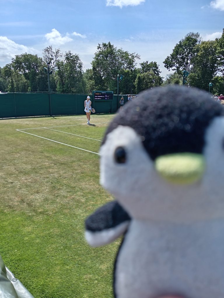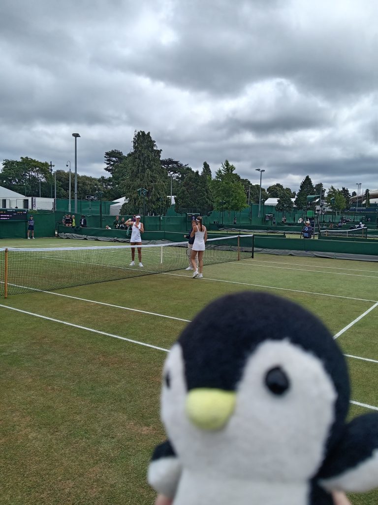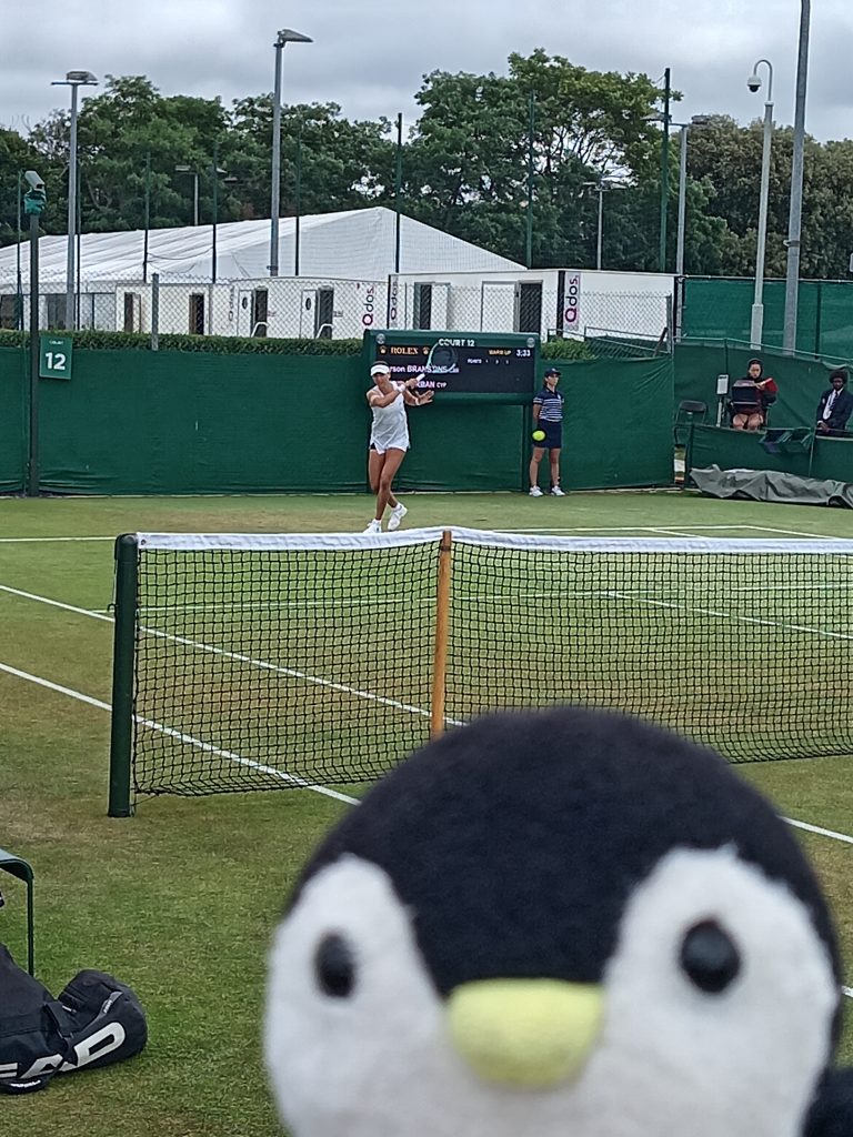 After Raluka I watch the last of the Swiss Players, Celine Naef, who is a set down to Taylor Townsend. Celine has her moments but the American is too strong especially at the net. The straight sets defeat means none of the Romanians or Swiss players have made it, so much for Postivity Penguin!