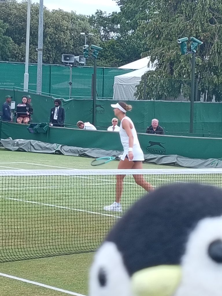 So comes the final day of Wimbledon qualifying. Slept reasonably well but the body is still very fatigued, truth be told I considered leaving early but I decided to stay the course. I checked out of the hostel as the tight buggers charged me for a locker for my bag and coat. Similar routine to the other mornings but this time I do have a Costa at Putney, a black coffee and tuna panini, I sat outside, it was very windy so I moved inside again, another fascinating tale. It is still very warm today yet overcast. There is a huge queue for the coffee when I arrive at the tennis, I join it but leave again because I want to watch Raluka Serban. Although she represents Cyprus, Raluka is still Romanian so she has support from PP and myself. It is an excellent start where she confidently goes up an early break, a few games in I have to leave for an arranged meeting.