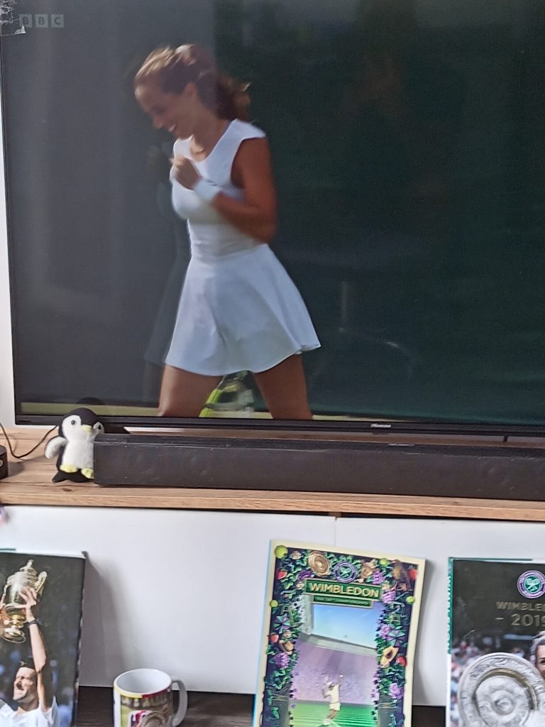 I think Jil won the toss and said receive but it’s rather noisy on the court next door – must be a Brit playing!